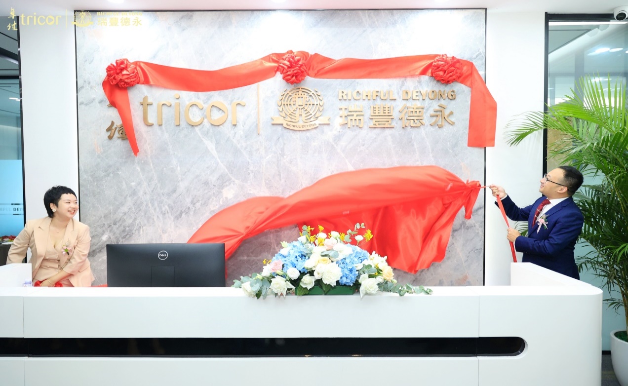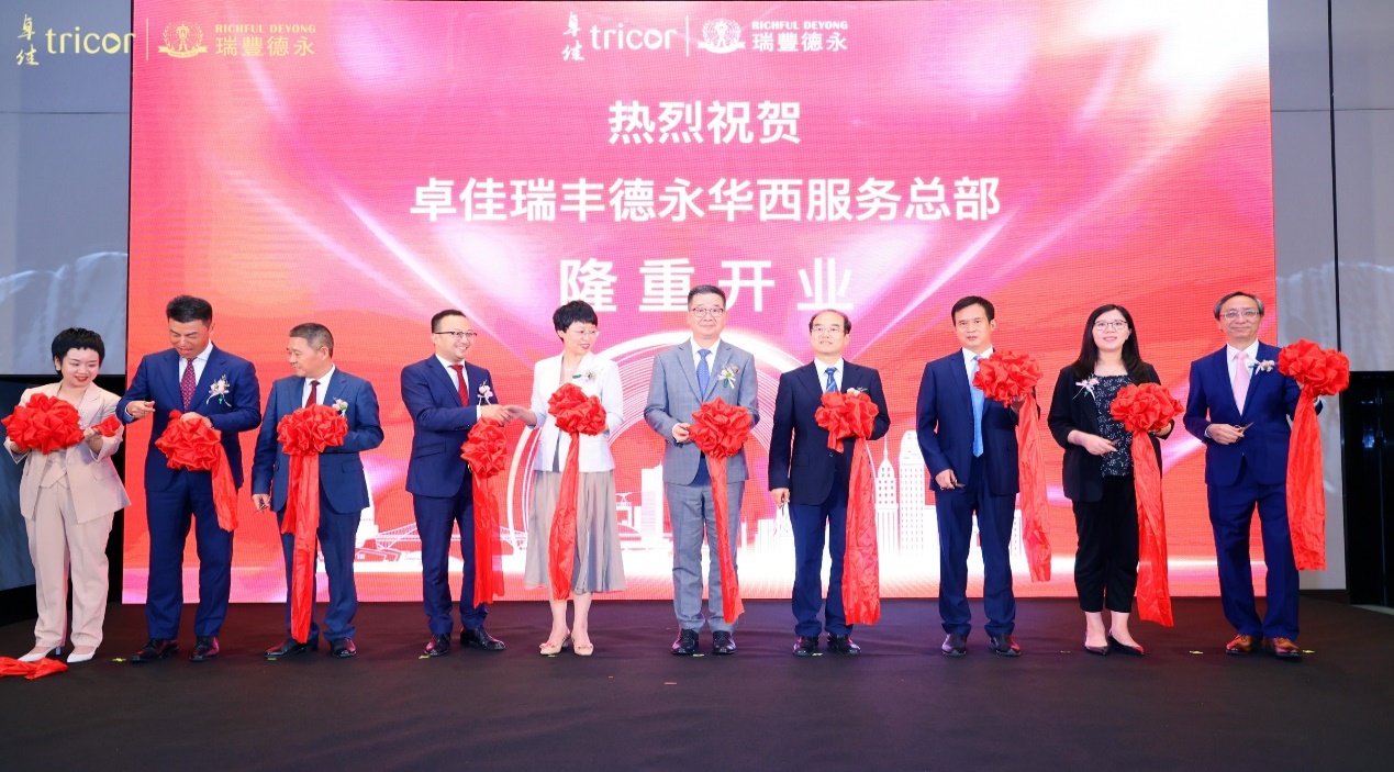 瑞堂启新章,丰岁展宏图。7月25日,在重庆市商委宋刚主任、重庆市港澳办张娅茜主任、重庆市江北区政府何勇常委、重庆市贸促会梁有余主任、香港贸发局重庆代表朱晔女士的共同见证下,卓佳瑞丰德永华西服务总部开业庆典在重庆国金中心隆重举行。