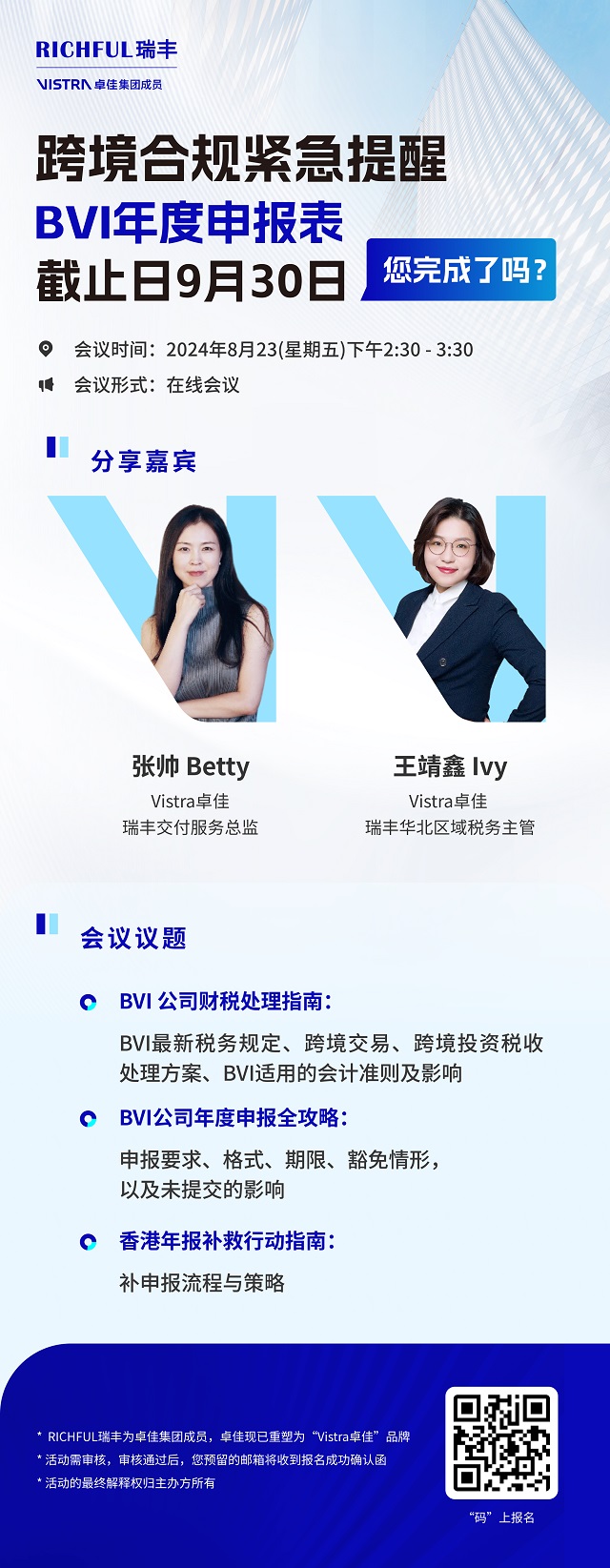 会议预告 | 跨境合规紧急提醒:BVI年度申报表截止日9月30日,您完成了吗?