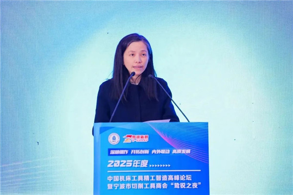 宁波市工商业联合会党组成员、副主席乐敏为本次论坛致辞,她表示:本次论坛机床工具行业优秀企业家们和知名专家们沟通交流、共同探讨未来行业发展的平台,是一次行业盛会,对于进一步把握切削工具产业发展的新理念和新趋势有积极和深远的意义。宁波作为东南沿海的重要制造基地,制造业实力强劲,目前已成为全国首个国家级制造业单项冠军突破百家的城市。有良好的切削工具产业发展基础,已形成配套完善的产业链,期待和大家一起,共同推动宁波切削工具产业的高质量发展。