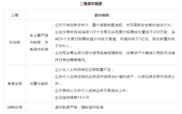 当然,上市条件门槛的降低需要成熟的投资人和后续的制度来支撑。不同市场的投资人看懂风险、管控风险的能力亦有差别。该资深人士表示,相对而言,因为已发展较为成熟,香港市场和纳斯达克市场的投资者是比较理性、有经验的投资人,所以即使将上市门槛放低也仍然比较可控。并且,退市机制也比较完善。国元证券数据显示,纳斯达克市场2016年IPO数量只有70家,但退市企业却有244家,相当于当年IPO数量的3倍多。近年来,纳斯达克退市率最低的一年发生在2014年,但也达到了32%。此次科创板将实行号称“史上最严”的退市制度,不过上述资深人士认为,在落地到执行层面的过程中,还牵涉到市场环境、法律环境等问题,最终实际效果如何有待检验。