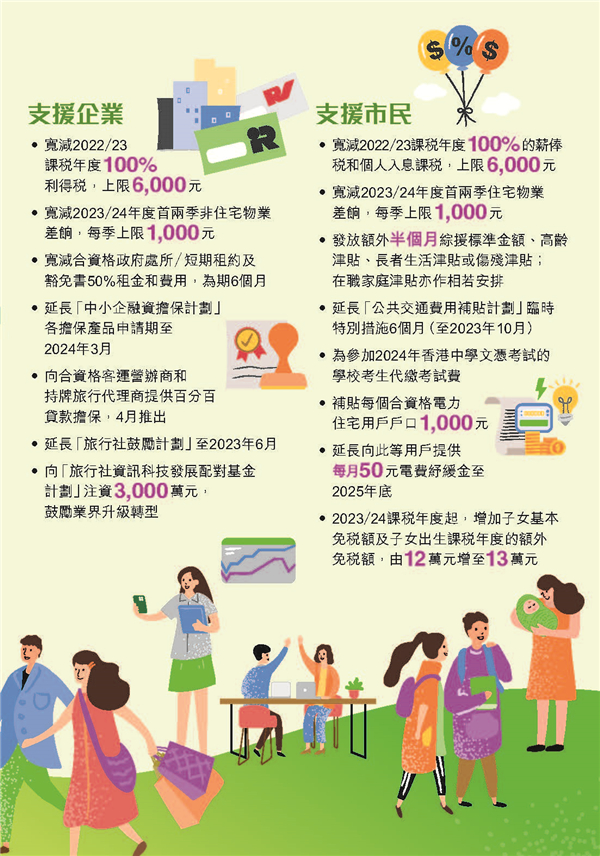 宽减2023/24年度首两季非住宅物业差饷,每季上限1,000元;