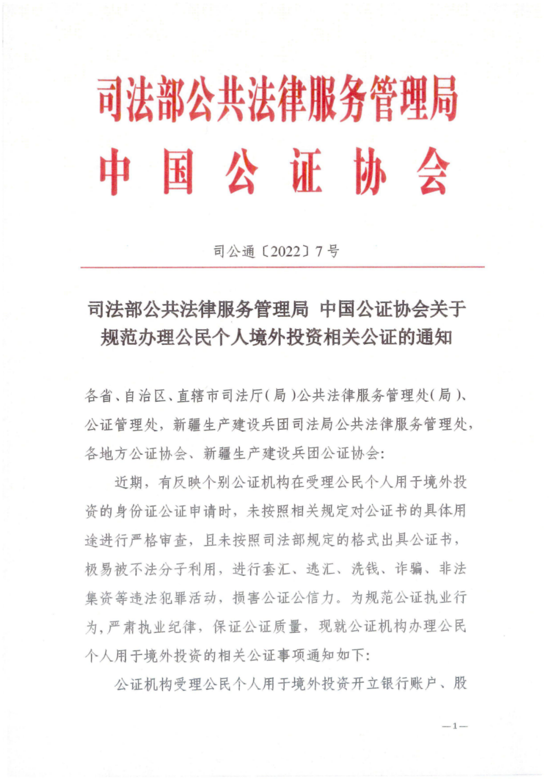近些年来,境外投资合规的信号无时无刻不在释放,2022年4月24日司法部公共法律服务管理局及中国公证协会下达了司公通【2022】7号《关于规范办理公民个人境外投资相关公证的通知》(以下"《通知》")。规范个人境外投资公证手续,旨在防止公证书被不法分子利用,进行各类违法行犯罪活动。又是一个领域的严格审查,其实归纳总结就两个字:合规!