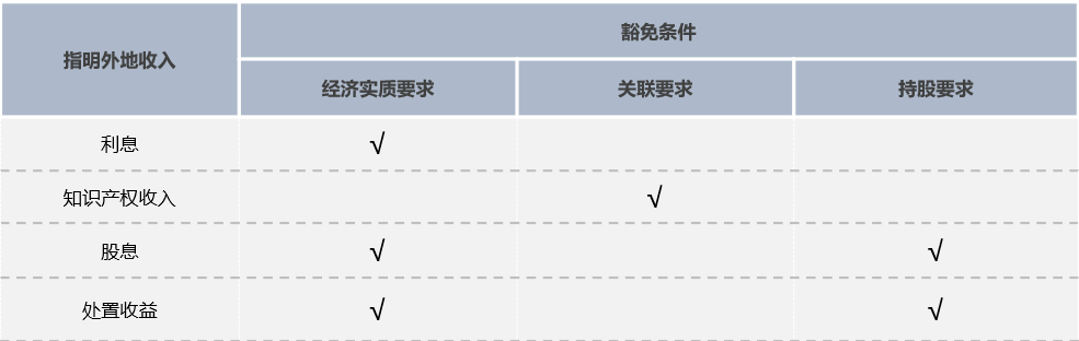 不同类型的指明外地收入须满足特定的判定标准要求才可申请豁免