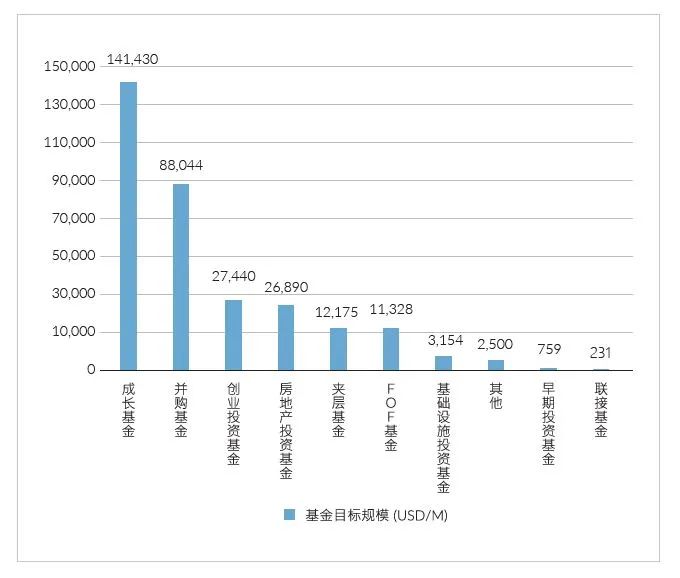 图1. 外资私募股权基金类型规模分布(单位:百万美元)