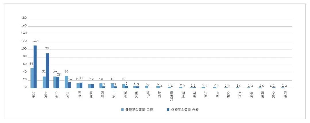 北京、上海成为外资私募股权基金在华投资进行基金注册登记的主要地区(见图表2),随着QFLP试点扩大和开放区范围额扩大,在海南等地进行登记的外资私募基金数量正在上升。
