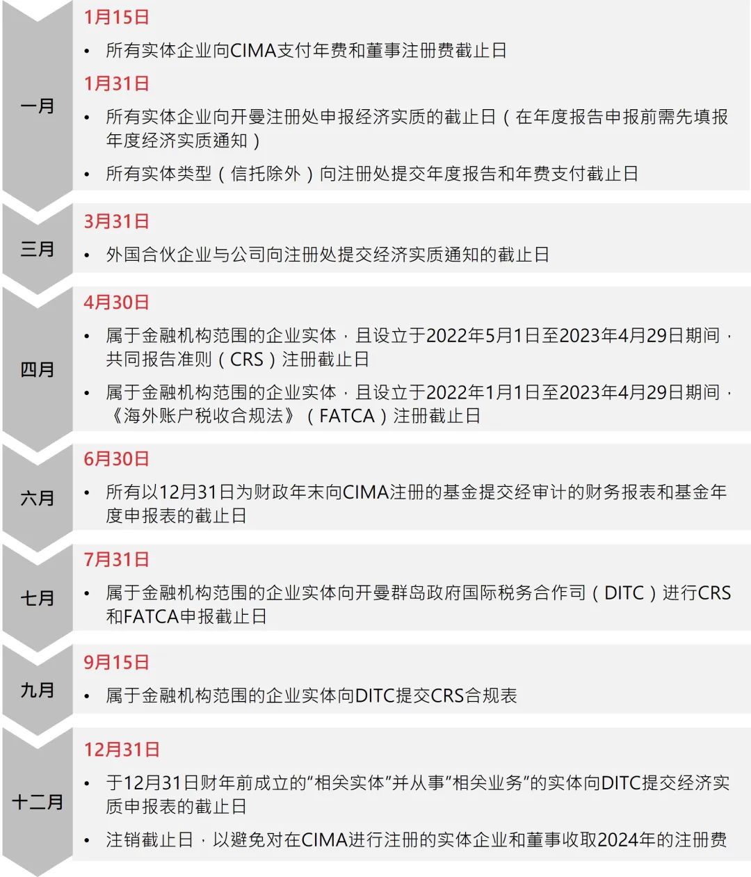为了协助您遵循公司的合规报告义务,我们为您整理开曼ELP型基金2023年合规日历,标注2023年各项合规申报的截止日期,以便您能更好地安排工作。