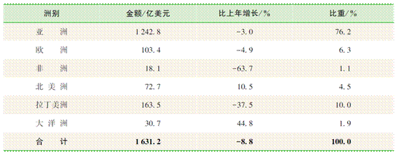 2. 超七成投资流向亚洲地区,对北美洲、大洋洲投资快速增长