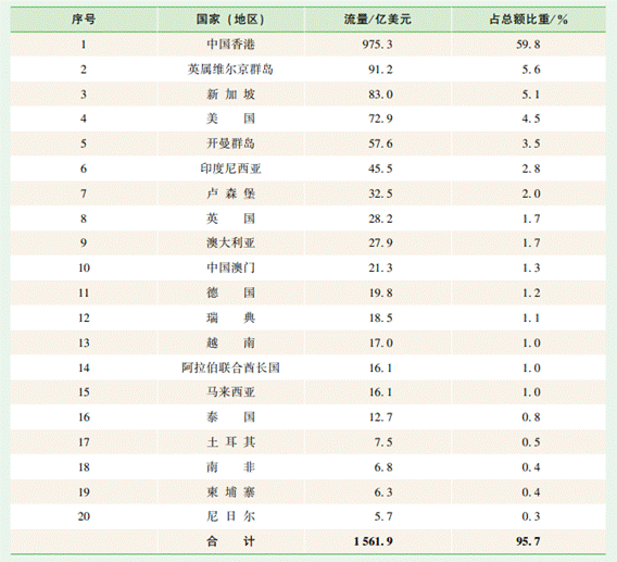 图表4. 2022年中国对外直接投资流量前二十位的国家(地区)