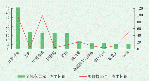图表5. 2022年中国企业对外投资并购十大目的地(按并购金额)
