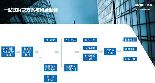 RICHFUL瑞丰就ODI备案和外汇登记向客户提供一站式咨询服务;协助客户准备ODI备案及外汇登记所需文件和材料;代表客户向主管部门申请并完成相应备案。