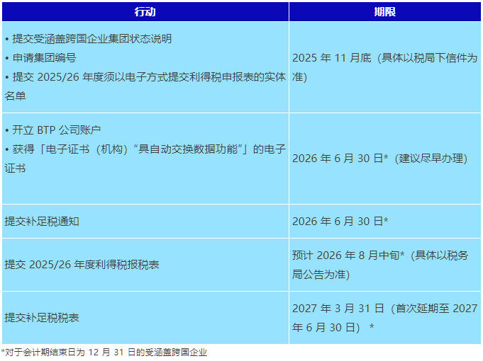 以下内容概述受盖跨国企业集团在新制度下的相关义务以及规定期限。