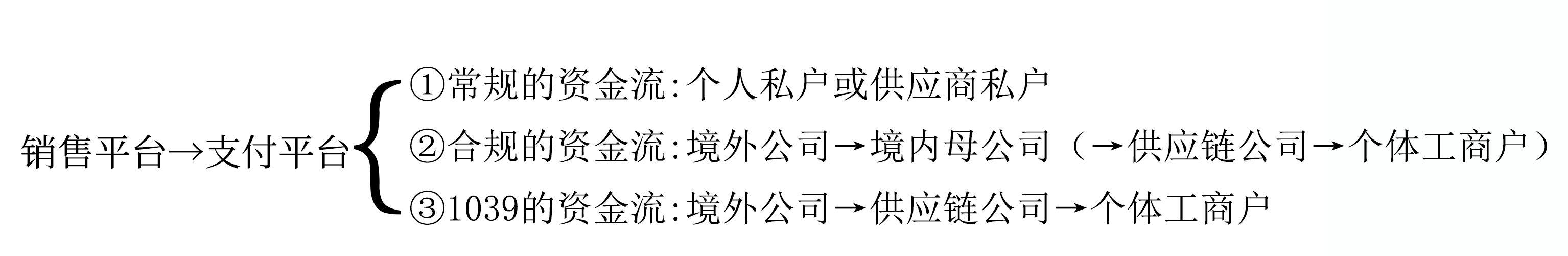 1039的资金流:销售平台→支付平台→境外公司→供应链公司→个体工商户;