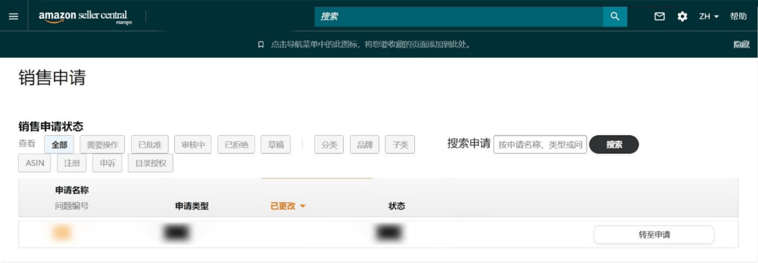 请注意,您也可以从这里直接进入销售申请工作流程:选择“目录”>“查看销售申请”。
