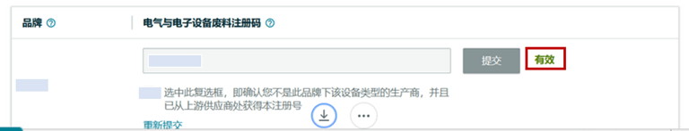卖家需确保已提交WEEE注册号,且验证结果均显示为“有效”。