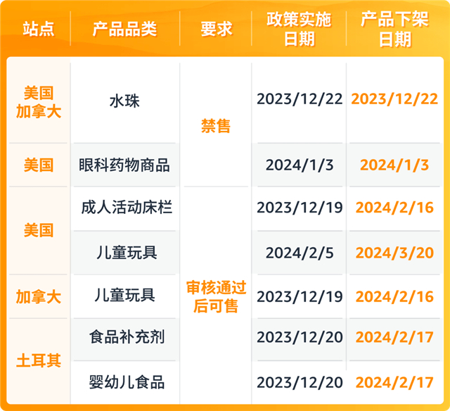近期,不少美国站、加拿大站、土耳其站卖家陆续收到了亚马逊合规政策要求邮件,对于“水珠”、“眼科药物商品”、“儿童玩具”、“成人活动床栏”、“食品补充剂”和“婴幼儿食品”品类合规要求有更新,请您及时关注!