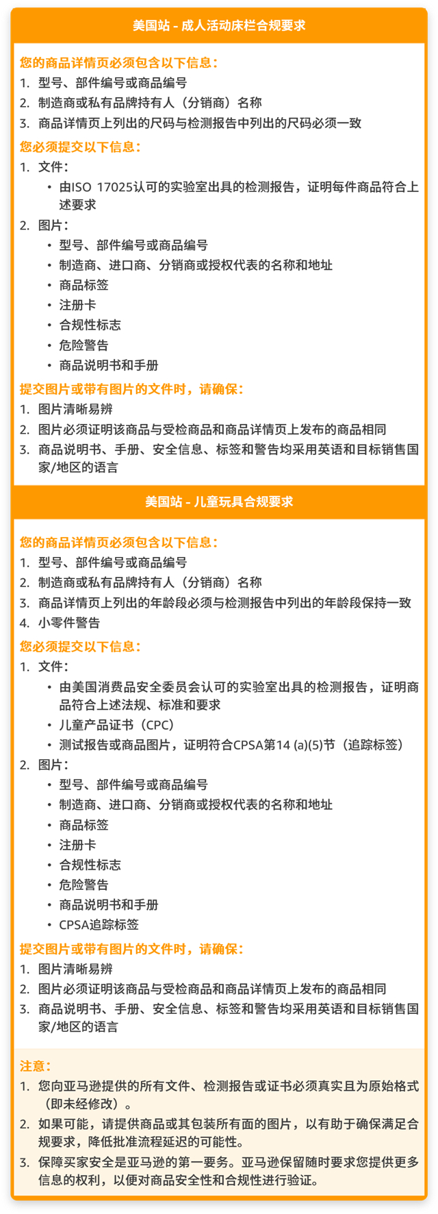 亚马逊要求所有儿童玩具均经过检测并符合下列所有法规、标准和要求: