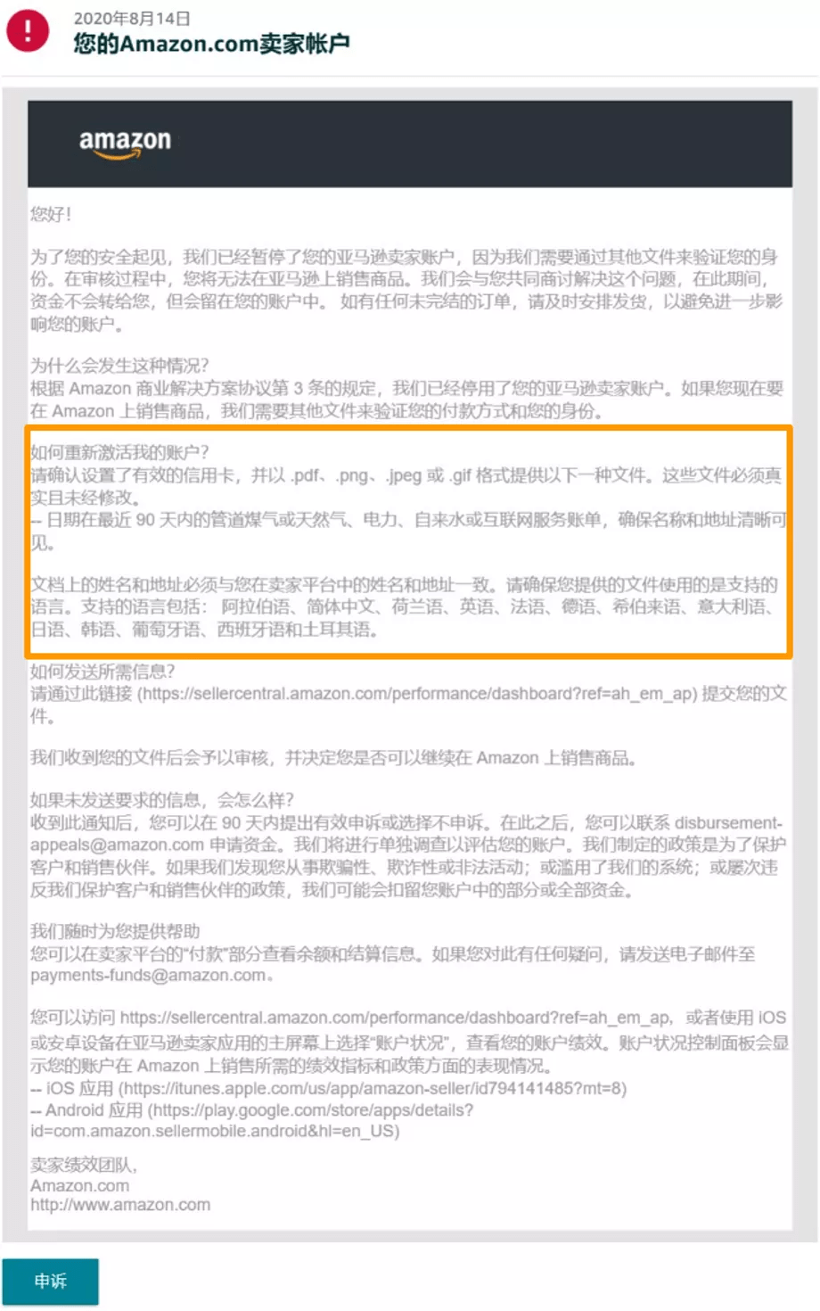 1、在亚马逊有足够的时间审核您的申诉之前,重复提交文档