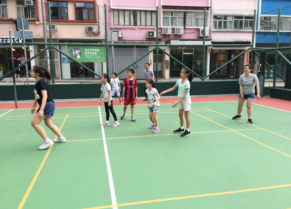 热身完毕,瑞豐德永义工团与小朋友聆听教练的讲解后,準备好接下来的分组比赛。