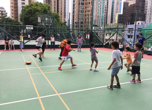 瑞豐德永义工团与小朋友互相传接闪避盘先作热身。