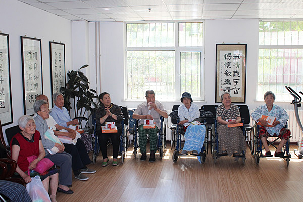 我们在干净明亮的活动室里见到老人们,送上了我们精心准备的毛毯、护腰和水杯等礼物。礼物虽轻但是却带去我们对老人们的关怀之情。