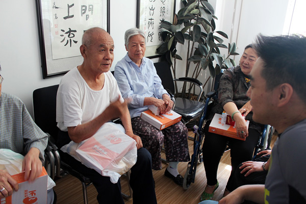 我们还和老人们一起唱起了熟悉的歌曲,一首中国心,一首拍手歌,老人们开心的和我们一起大合唱,随着节拍拍动双手,把整个气氛推到了一个小高潮。