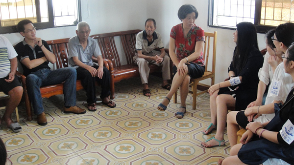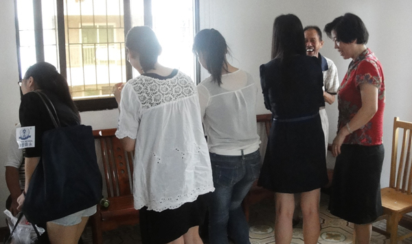 厦门公司员工正在向院长了解爷爷们的日常起居情况