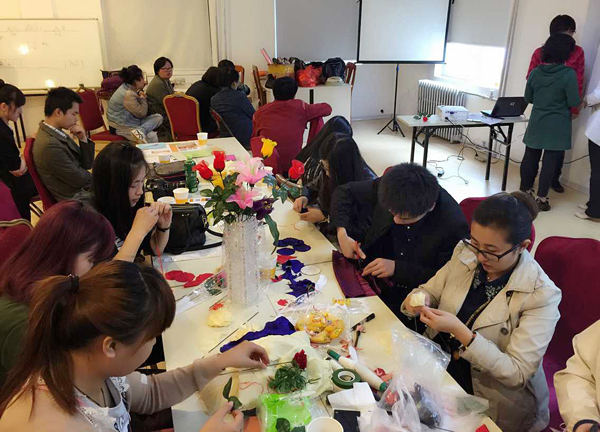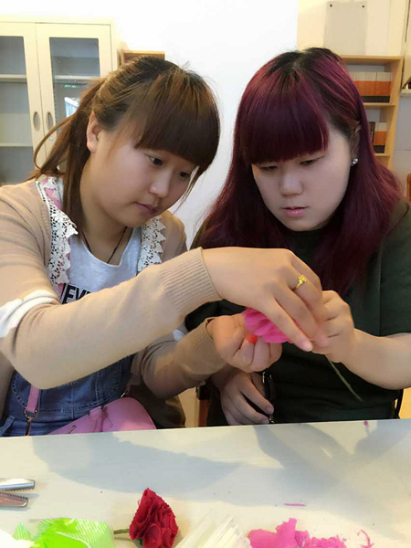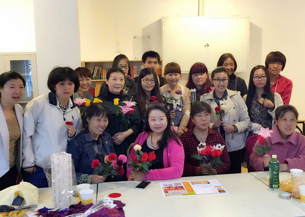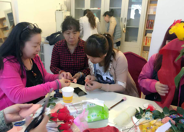 两个小时的公益活动很快就结束了,看着自己亲手做出来的漂亮花儿大家都很开心也很满足,同时也希望这些花儿可以给残疾人妈妈带去欢乐。